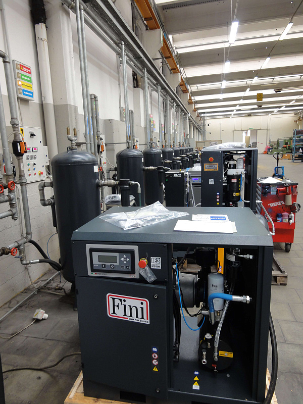 Компания FINI выпускает свыше 11 000 винтовых и более 1 500 000 поршневых компрессоров ежегодно, имеет производства полного цикла. Компания постоянно разрабатывает и использует передовые технологии в производстве компрессорного оборудования. В частности использует энергосберегающие приводы, винтовые блоки прогрессивной геометрии, инновационные системы управления компрессорной станцией в т.ч. с мобильных устройств, имеет запатентованную технологию безмуфтовой передачи в винтовых компрессорах с прямым приводом и использует поликлиновые Poly-V ремни в компрессорах с ременным приводом с ресурсом 12 000 часов!