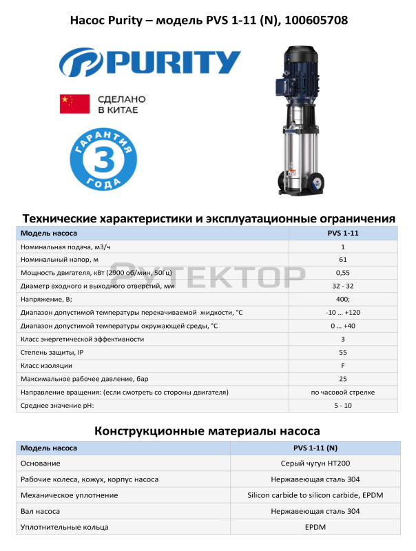 5 1 Вертикальный многоступенчатый насос PURITY PVS 1-11 (N)
